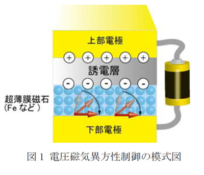 AI(人工知能)、IoT(Internet of Things)、ASV(先進安全自動車)などの新技術が急速に身近なものになるにつれて、それらを構成する電子デバイスの消費電力低減は益々重要な課題となっている。その1つのアプローチとして注目されているのが電源を切っても情報を保持可能、つまり待機電力が不要な"不揮発性メモリ"である。我々は電子が有する磁石としての性質(スピン)を利用して新機能電子デバイスの創製を目指す「スピントロニクス」技術により、不揮発性固体磁気メモリ(MRAM)の開発に取り組んでいる。しかしながら現状のMRAMでは、情報の書き込み(スピン方向の制御)に電流通電を必要としているため、抵抗損失による不要な電力消費が駆動電力低減の弊害となっている。